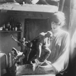 Whitney would remain a top donor, driving the campaign to construct the Cushing Gallery. The Memorial Building would honor her colleague, Howard Gardiner Cushing, and serve as a fire-proof gallery better equipped to store the AAN’s growing collection. Her own career as an artist became more serious around this time, as she received commissions for various national monuments throughout the country.
